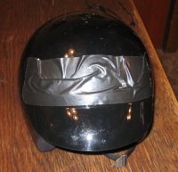 DUCT TAPE! for scrollable printable pic. HA! Well, not really. The duct tape was for experimentation only. Didn't really want to look like a redneck and my neck wasn't red anyway, it was blue from the cold. But, I needed to get the placement correct on the back of the helmet before any permanent attachment. I recommend if you decide to try this, you do the same. Experiment then make it permanent. But you don't really want it to be permanent so when you get the placement right with duct tape, mark the location, then go on to use.... |