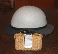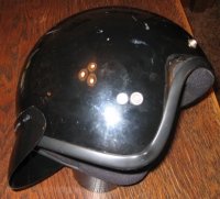 MY FIRST SOLUTION - NOVELTY HELMET: for scrollable printable pic. As well as all the other stuff, I have an old football injury to my cervical vertebrae which makes wearing a heavy helmet difficult to begin with and the added BACKDRAFT was a real problem, a BIG pain! My first solution was to wear a "novelty" helmet with two baseball caps "Sherlock Holmes" style. I would put one cap on the correct way for a sun visor and add another cap on top with the bill facing back for the backdraft problem. It works and I do enjoy the air and the feeling of freedom this solution affords. I actually only wore the helmet to keep the ball caps in place. But, safety goes out the window needless to say. When I would wear a "real" helmet (especially when it's cold), the weight combined with the BACKDRAFT.. well, I already said that. Picture is shown of the contrivance I usually wear when riding the Wing. This helmet has been painted with American Accents Stone Creations spray paint (Lowes, Home Depot) with a coat of clear over it. |