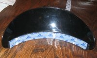 VELCRO! for scrollable printable pic. I scrounged around the wife's sewing room and found a nice roll of sticky back ¾ inch black VELCRO. Just right! I chose to put the HOOK part onto the visor because the hook stuff grabs onto lint and whatnot and if it's on the helmet without the visor in place, it'll grab your collar too. First, clean the helmet and visor with Isopropyl alcohol so the sticky will stick. I found the best way to line the hook part up is to set the visor on the table with the hook Velcro as pictured and slowly stick the center of the Velcro to the center of the visor then work your way out. |