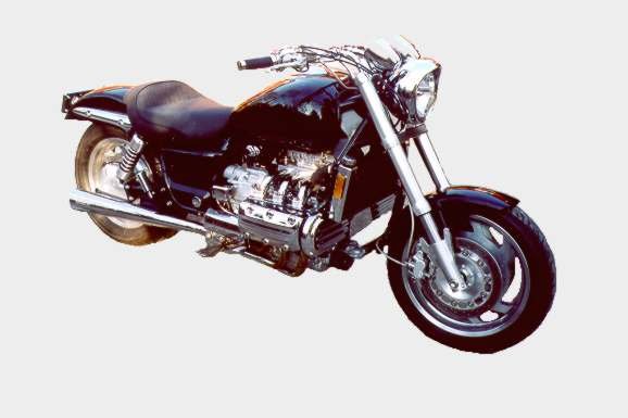 SAFETY: Tires will lose or gain up to 1 pound of pressure per ten degrees of ambient temperature change. The Valkyrie is equipped with aluminum hollow cast wheels which do indeed bleed air pressure, especially when cold. Check your tire pressure often. Under-inflated tires are a detriment to handling and will wear much more quickly. Over-inflated tires cause poor grip and harsh ride. Cold weather causes tires to grip less efficiently and, too, there may be a salt film on the road in winter and early spring. Roads are more slick when it first starts to rain because oil and debris, which were comfortably settled in the recess of the pavement, get floated to the contact surface while there has not yet been enough water to wash it away. This is especially true in regions where long dry periods are followed by spotty rain showers. Watch carefully at highway ramps that lead to major truck stops. Diesel fuel dripped from semi tanks mixed with rain water makes for a slippery cocktail on the road. Of course, there is always that nasty [BLACK ICE] (moisture on cold roads that freezes but the road looks just fine to the eye). Shiny tar, whether in patches or "road snakes" (crack sealant) can cause you grief as well as freshly sealed parking lots if hot or wet. Do we need to mention? "Road gators" (blown semi recaps), hunks of plywood (talk about slippery!), reflective road markings, manhole covers, grocery bags (paper or plastic?)... all affect traction.